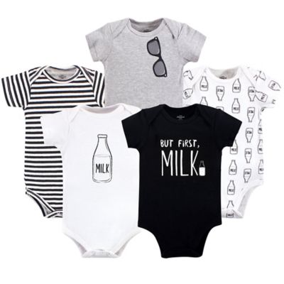 Customer Reviews Little Treasure Size 3 6m 5 Pack First Milk Short Sleeve Bodysuits In Black Buy Buy Baby